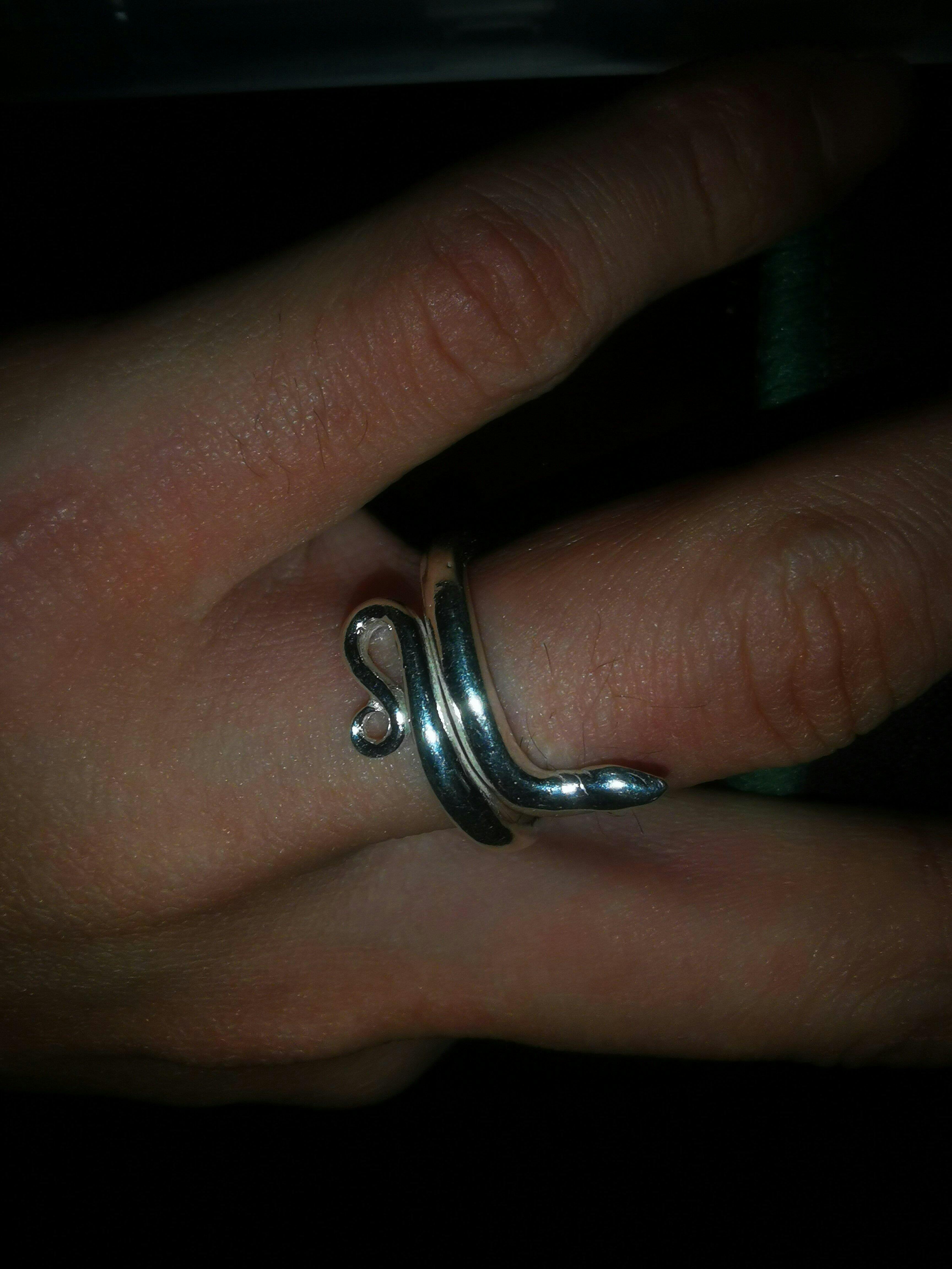It should be worn on the ring finger of the left hand with the snakehead facing upwards.