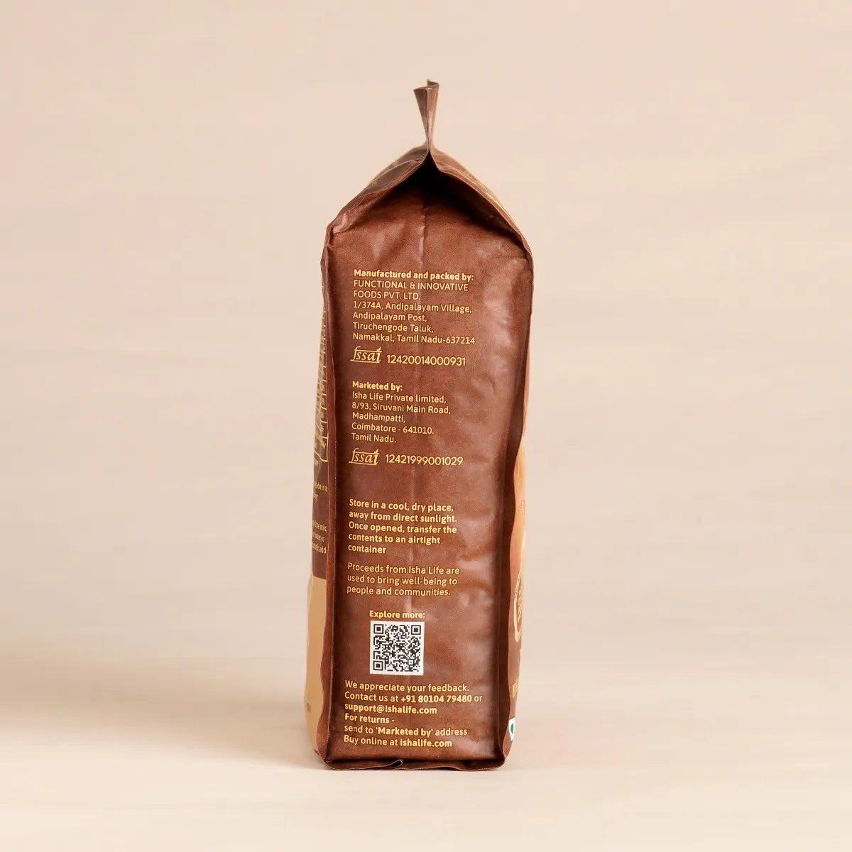 Isha Life’s Ragi Instant drink mix is free of sugar, malt and additives of any kind making it the cleanest Ragi drink that is there. Sweeten with Jaggery or Honey if you’d like your drink sweet.