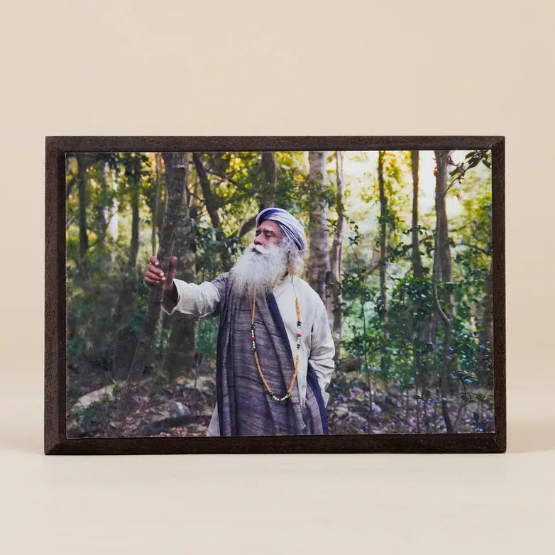Bring home this striking photograph of Sadhguru, a source of inspiration to help you strive toward your ultimate possibility. The alluring photograph evokes a sense of reverence and devotion towards the master. Encased in an elegant wooden frame, it is lightweight, easy to clean, and comes with a mounting hook. Perfect for hanging in your office or living room, it can be a powerful tool for your personal transformation.