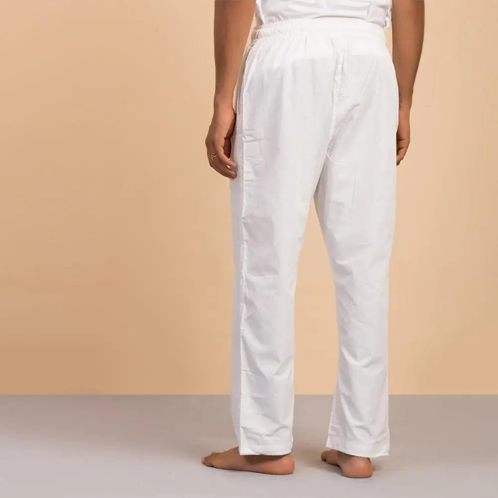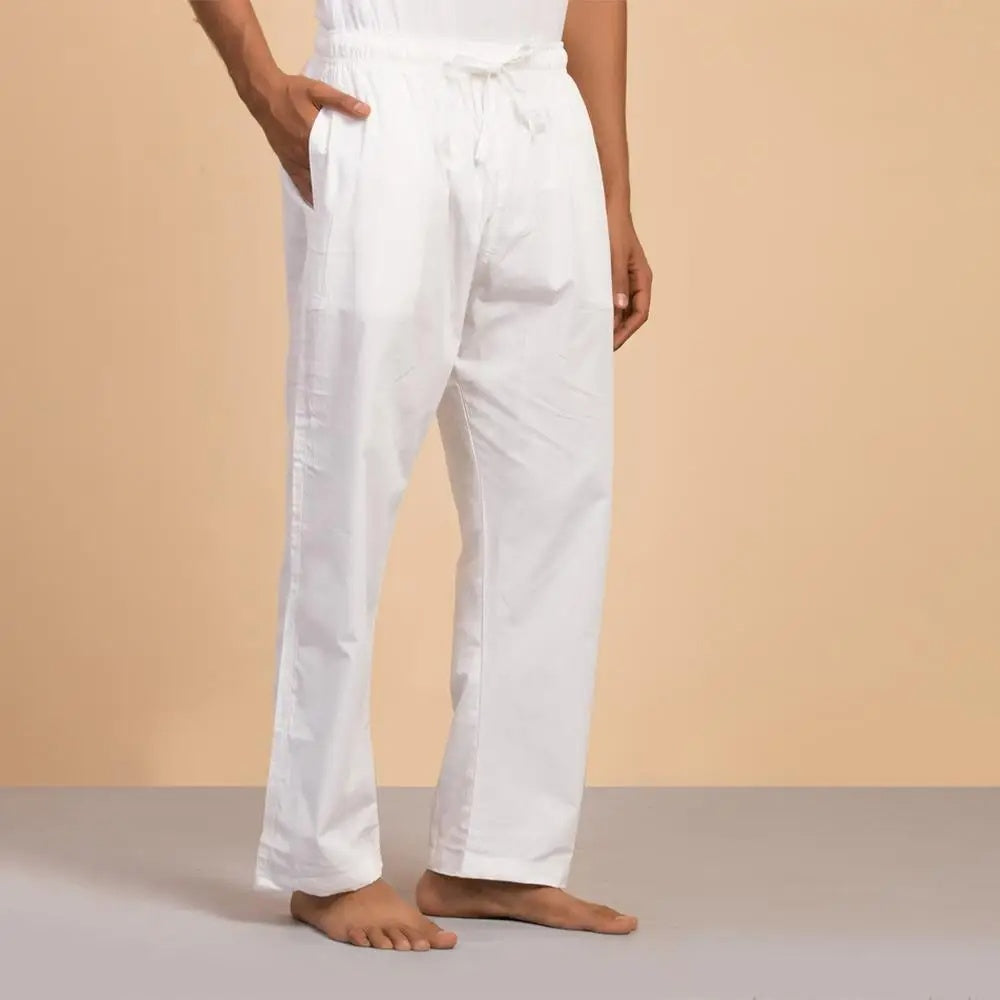 Men’s Organic Cotton Sadhana Pyjama. Solid white. Breathable fabric. Comfortable for Sadhana.